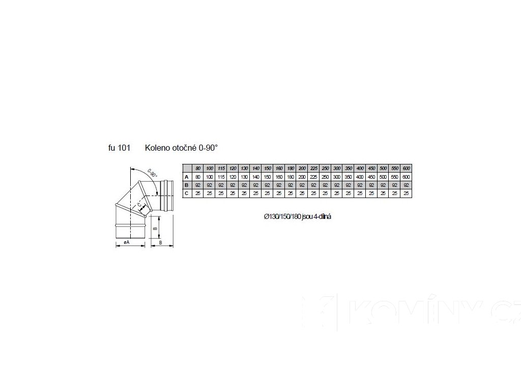 Koleno otočné s rozsahem 0-90° pro zajištění a dopojení spotřebiče.