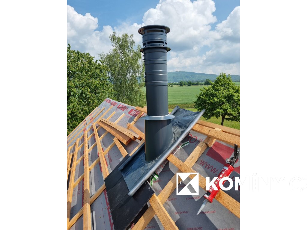 Spáru mezi komínem a límcem doporučujeme zatmelit. Na límci je páska pro mechanické upevnění.