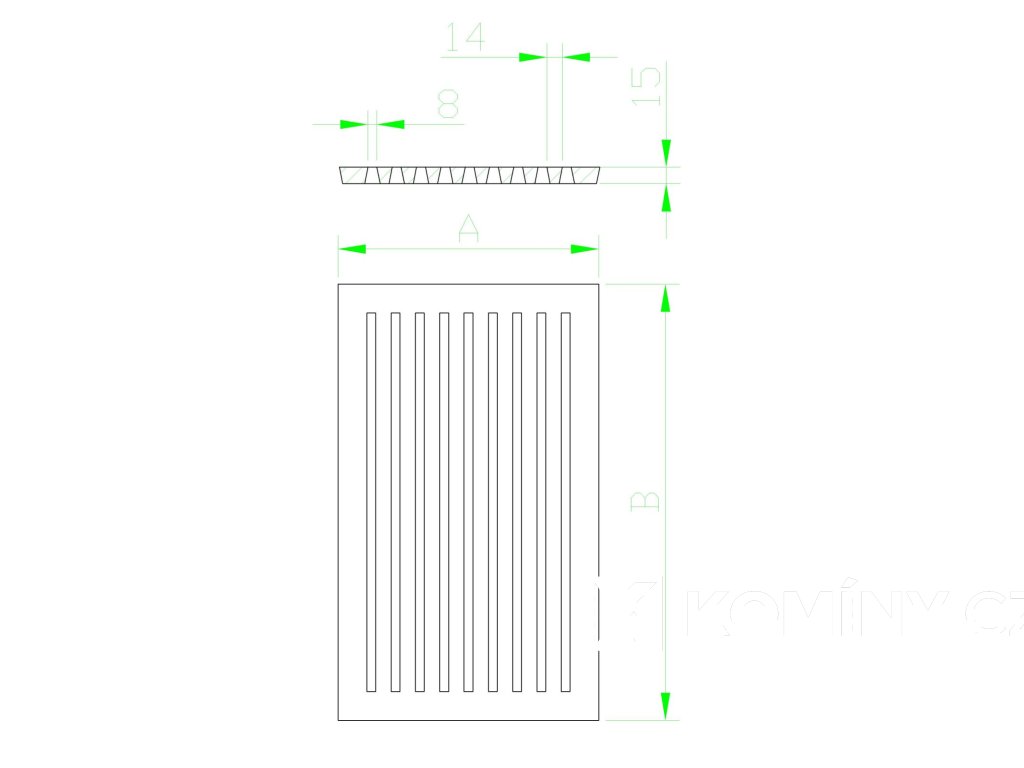 Rošty jsou odlity z šedé litiny 422420. Tloušťka roštů je 15 mm.