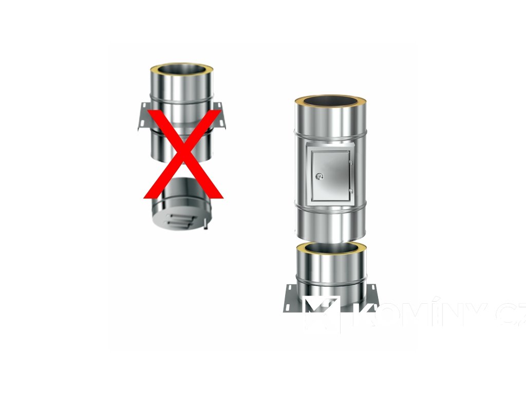 Čištění a založení sestavy komínu je pomocí průchozí základové desky, kde je dole osazena nádoba na saze.