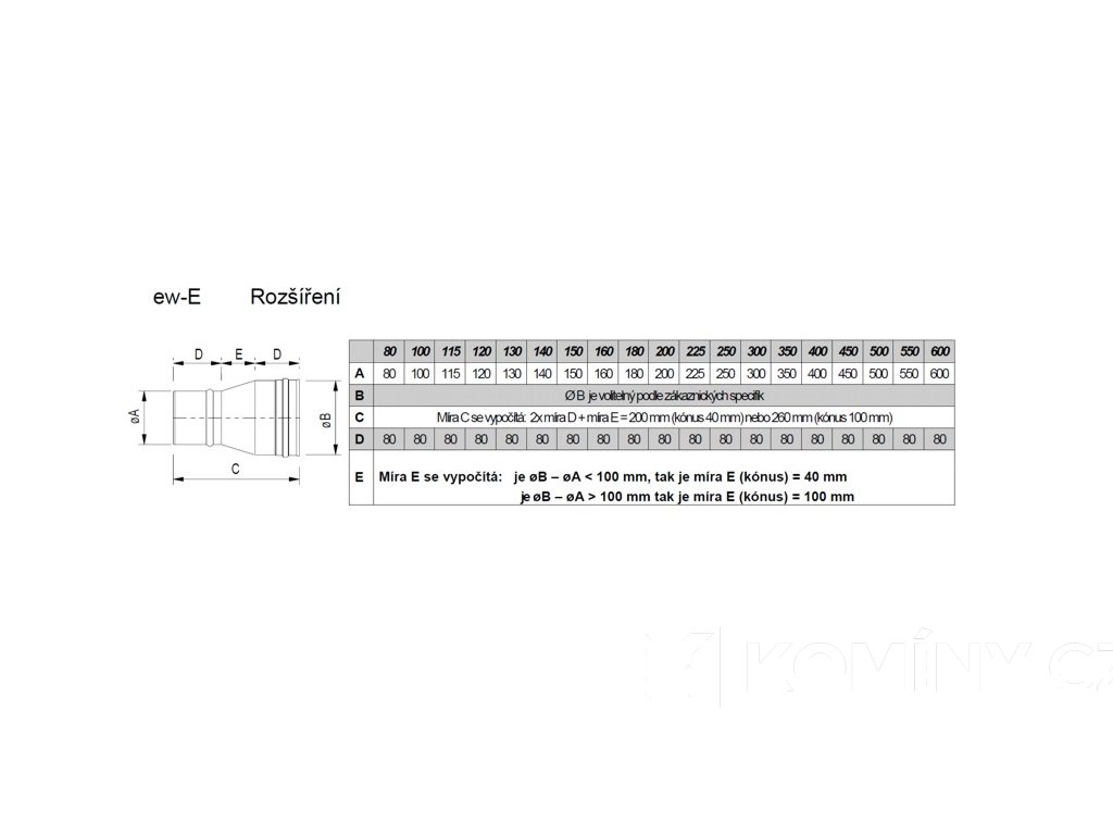 Nerezové rozšíření pro zajištění odlišného průměru na T-kusu. Pro případ, kdy svislý průměr nerezové vložky je větší, než průměr připojovaného spotřebiče.