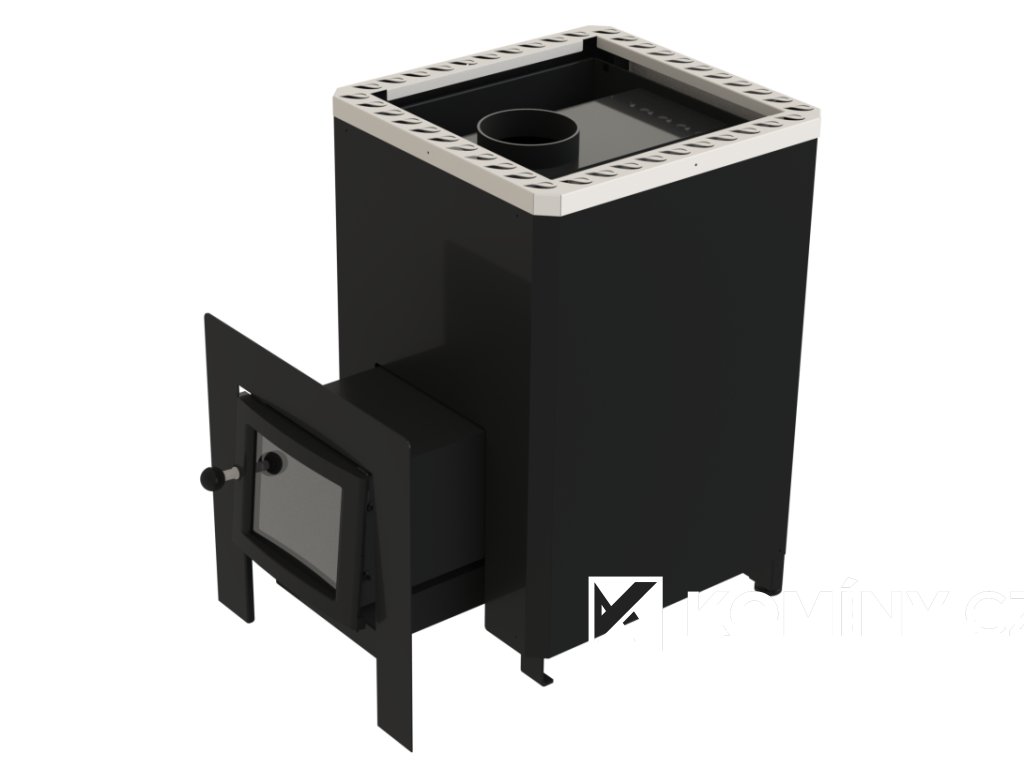 Kamna na dřevo pro středně velké sauny. Tato kamna mají vnější topeniště, což znamená, že dřevo můžete přikládat zvenčí sauny. Tento typ kamen lze nakládat velkým množstvím kamenů a mají izolovanou spalovací komoru, takže pára generovaná těmito kamny je extrémně jemná a rovnoměrná.