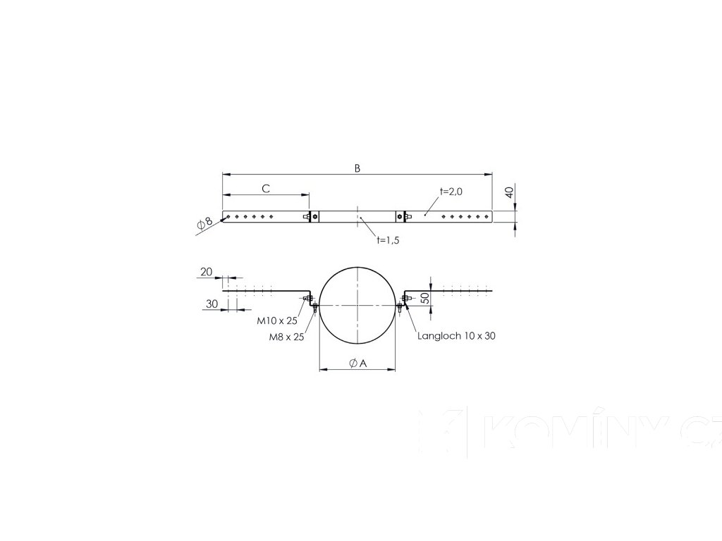Držák pro upevnění do krovu pro komín s vnějším průměrem 300 mm.