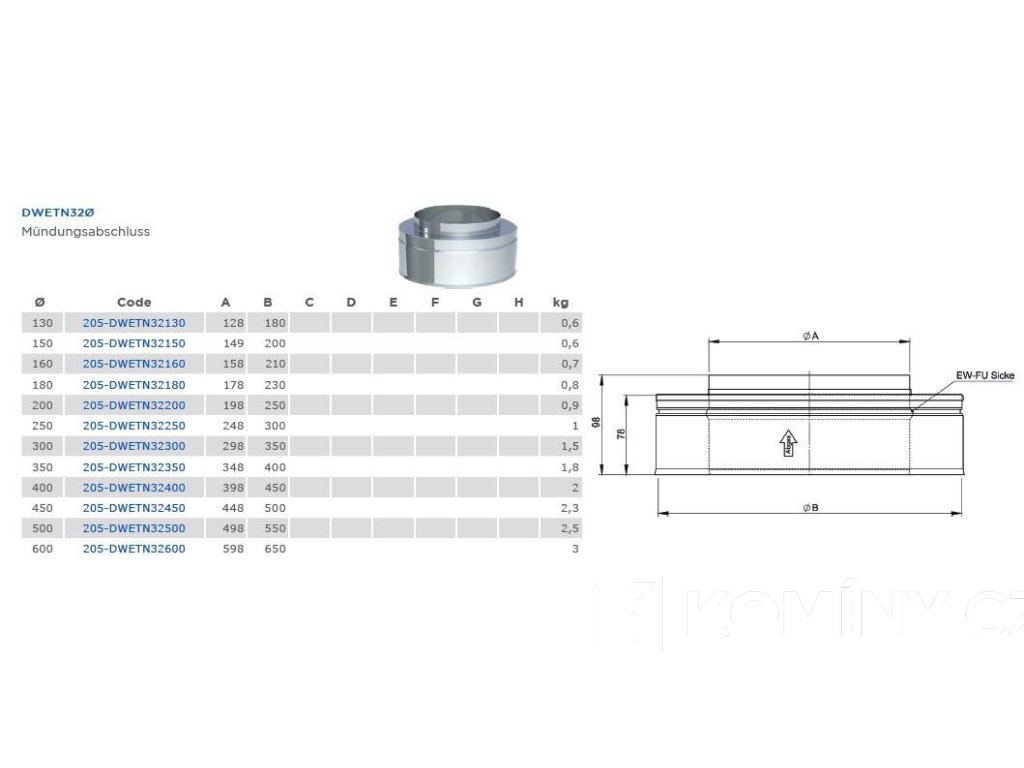 Vnitřní průměr komínu 250mm/izolace 25mm.