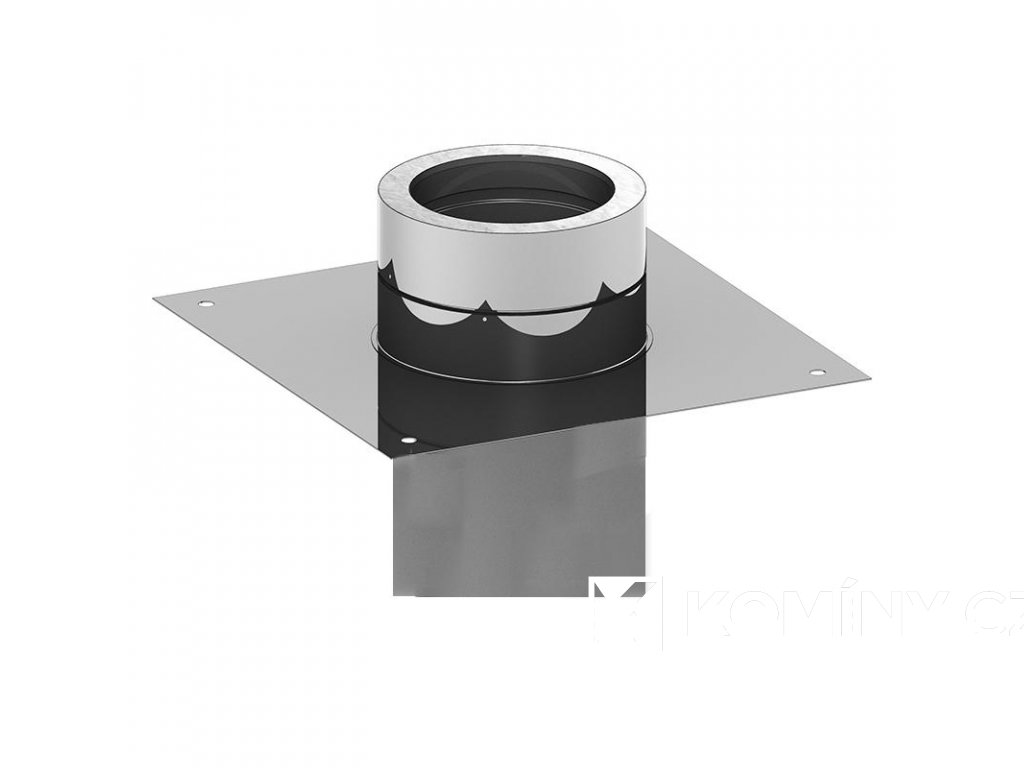 Základová deska pro realizaci nerezového nástavce. Osazuje se na stávající vyzděný komín pomocí sady pro upevnění nástavce. Provedení bez okapnice a odvětrání. Směrem dolů má nástavec čtvercovou neizolovanou část ca 180x180 mm. Délka zásunu je cca 300 mm. Směrem nahoru je izolovaný výstup pro osazení izolovaných vložek nástavce vnitřní průměr 180mm/izolace 30mm.